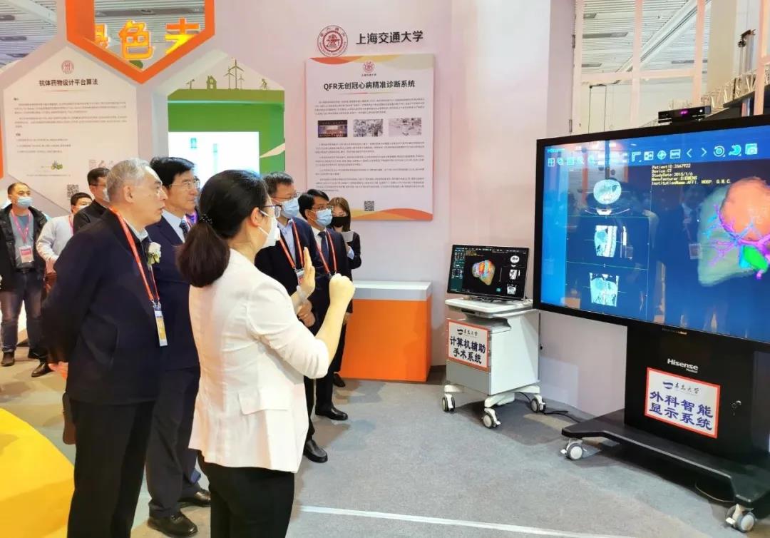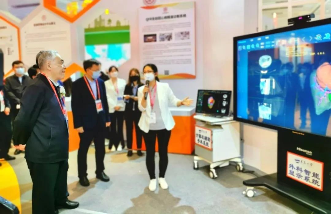 由青岛大学附属医院董蒨教授领衔的数字医学团队与海信医疗合作研发的海信CAS和海信SID两台设备在高校科技创新成果展上亮相,成果受到广泛关注。展出期间,中国高等教育学会会长、教育部原党组副书记、副部长杜玉波,山东省副省长、省政府党组成员王心富,学会副会长、国家民委原副部长级专职委员管培俊,学会副会长、上海交通大学原党委书记姜斯宪,山东省人民政府副秘书长黄红光,山东省教育厅党组书记、厅长邓云锋等领导驻足参观指导,并对成果给予高度评价。