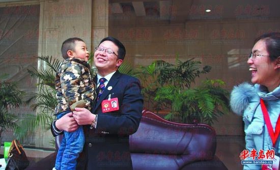 1月28日,山东省政协医药卫生组讨论会结束后,省政协委员、青大附院副院长董蒨走出会场迎来了他的小病号帅帅(化名)并抽空为其“会诊”。帅帅是2013年12月本报曾报道的《“手术导航”救了两岁巨瘤儿》一文中的小主人公,当时他曾因病情太凶险多家医院不敢收,直到来到青岛才捡回一条命。