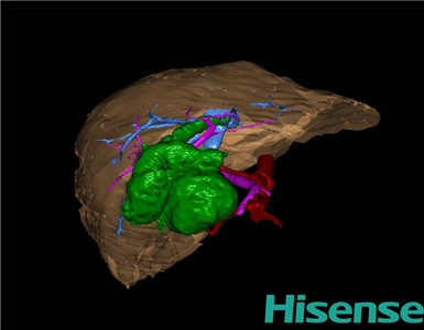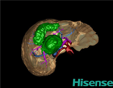 通过调节窗宽窗位调整CT序号,对肝实质,胆囊,下腔静脉,肿瘤,肝动脉、门静脉及肝静脉等进行三维重建;系统自动计算肝脏体积。