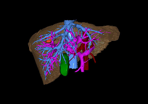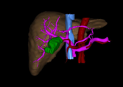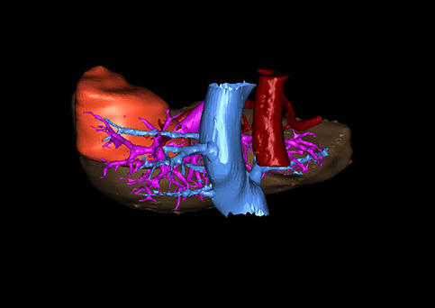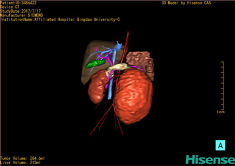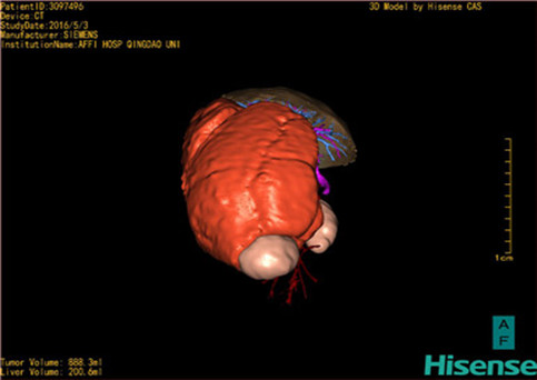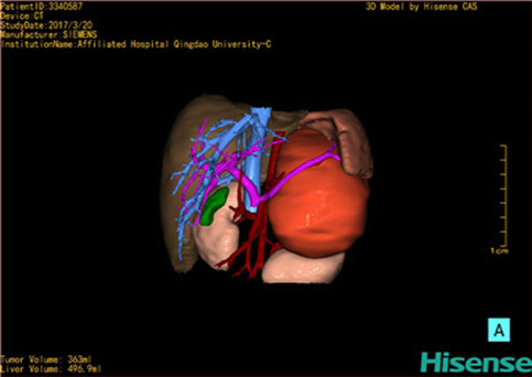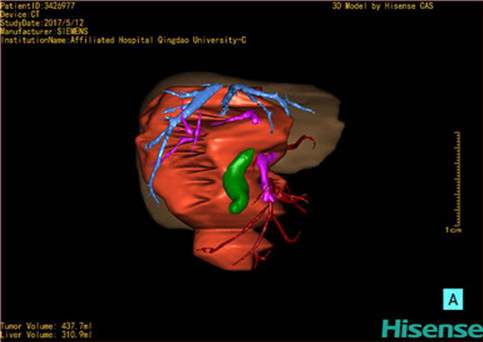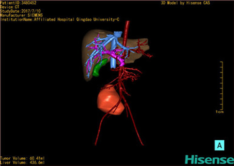 运用计算机辅助手术系统(Computer Assisted Surgery System,CAS),载入患者DICOM格式的病变肝脏CT数据集,对病变的肝脏实质、门静脉系统、肝动脉系统、肝静脉系统以及胆道系统分别进行三维构建,形成透明化、可视化、可任意组合的三维数字模型,组建个体化的病变肝脏的数字肝脏模型。这一数字肝脏能直观显示患儿个体的功能肝脏体积以及形态、病变后肝血管系统及胆道系统的破坏程度等,为患者临床诊断、肝脏功能储备评估、术前评估、治疗方式的选择、肝移植评估、预后评估等提供个体化的临床资料,可为治疗提供个体化、精准化的肝脏数据。对同一患者治疗后的CT数据集进行同样的三维构建,在不同时期与治疗前进行对比,可了解治疗方式对治疗的影响、治疗后肝脏的改变等,为患者进一步的治疗提供影像学支持,准确评估患者预后,提高临床治愈率。肝脏少见病、罕见病的大宗数字模型可组建上述病变的独立数据库,为人类研究此类疾病提供宝贵资源:综合全国乃至全球的同类病变肝脏的数字模型组建此类病变的数字肝脏数据库,然后根据同类疾病、同一疾病的不同阶段、不同年龄段等分别组建分数据库。此数据库可一定程度的摒弃病种罕见稀少、临床资料残缺、随访失败等不确定因素,提高疾病的研究可行性。通过对数据库的分析,有利于进一步了解肝脏罕见、少见病变的生物学特性、流行病学特征、治疗效果以及治疗后肝脏的形态改变等情况,进而评估病变对机体的影响、治疗的近远期效果,分析病因,为我们研究肝脏罕见、少见疾病病理生理学、治疗学、病因学、未成年体发育学等提供直观、充足、有效的临床数字化资料。